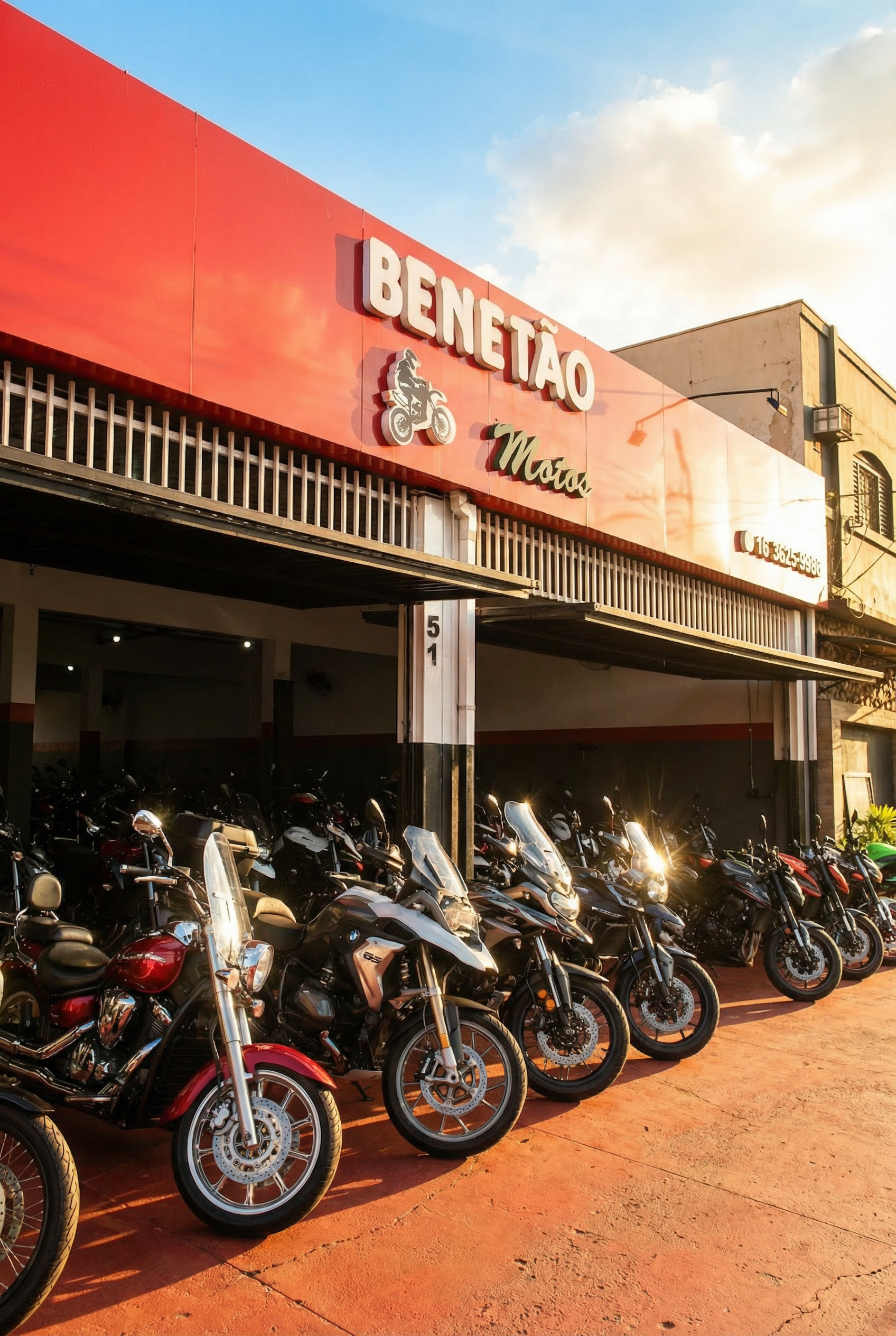 A Benetão Motos nasceu em Ribeirão Preto e soma + de 40 anos de história. Fundada por Antonio Carlos Benetão, a loja construiu credibilidade com atendimento direto, motos de procedência e relacionamento próximo com cada cliente. Hoje, Antonio Crispim Benetão segue ao lado do pai, mantendo o padrão de confiança, experiência e tradição que sempre marcaram a Benetão Motos.