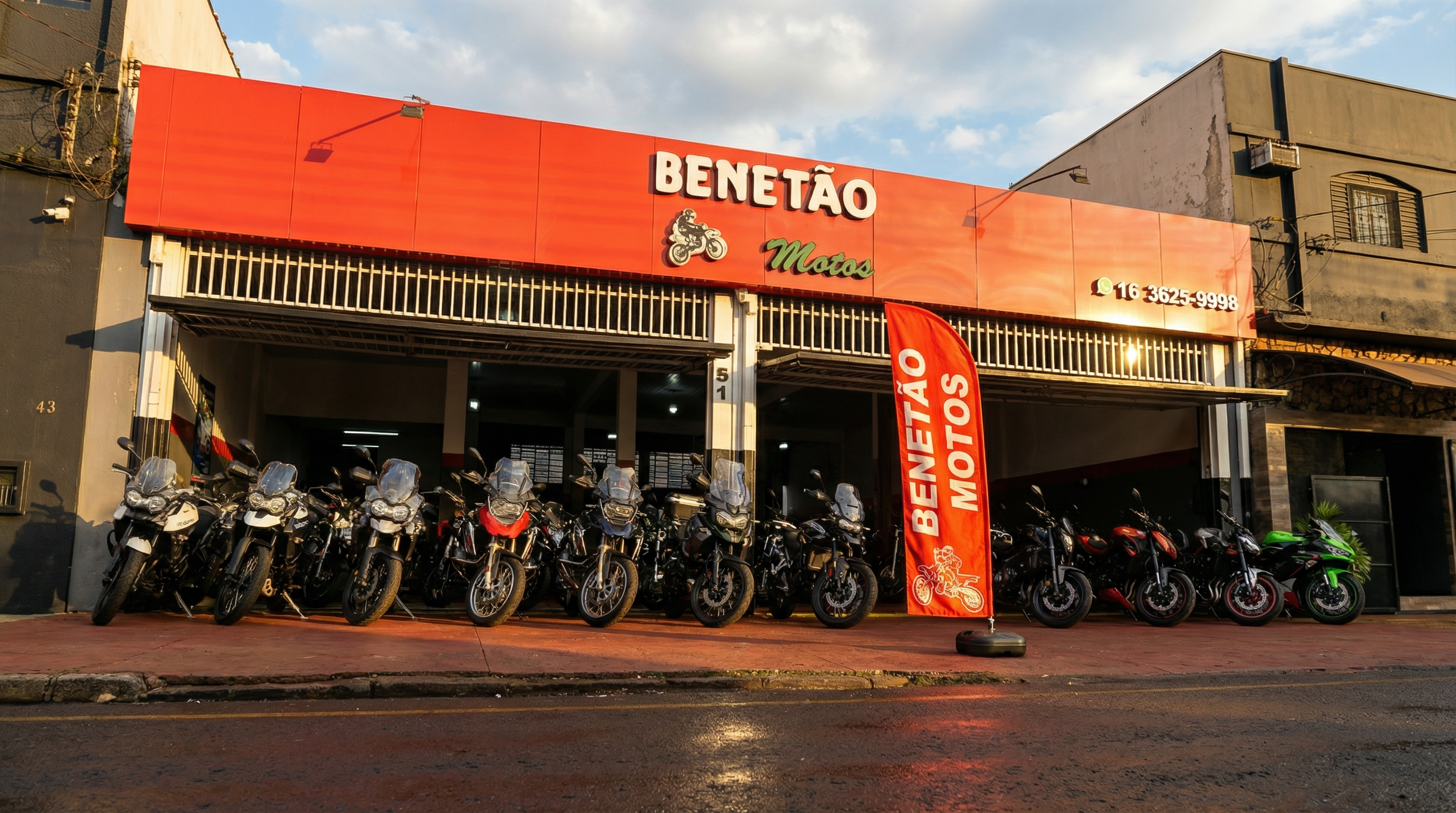 A Benetão Motos nasceu em Ribeirão Preto e soma + de 40 anos de história. Fundada por Antonio Carlos Benetão, a loja construiu credibilidade com atendimento direto, motos de procedência e relacionamento próximo com cada cliente. Hoje, Antonio Crispim Benetão segue ao lado do pai, mantendo o padrão de confiança, experiência e tradição que sempre marcaram a Benetão Motos.